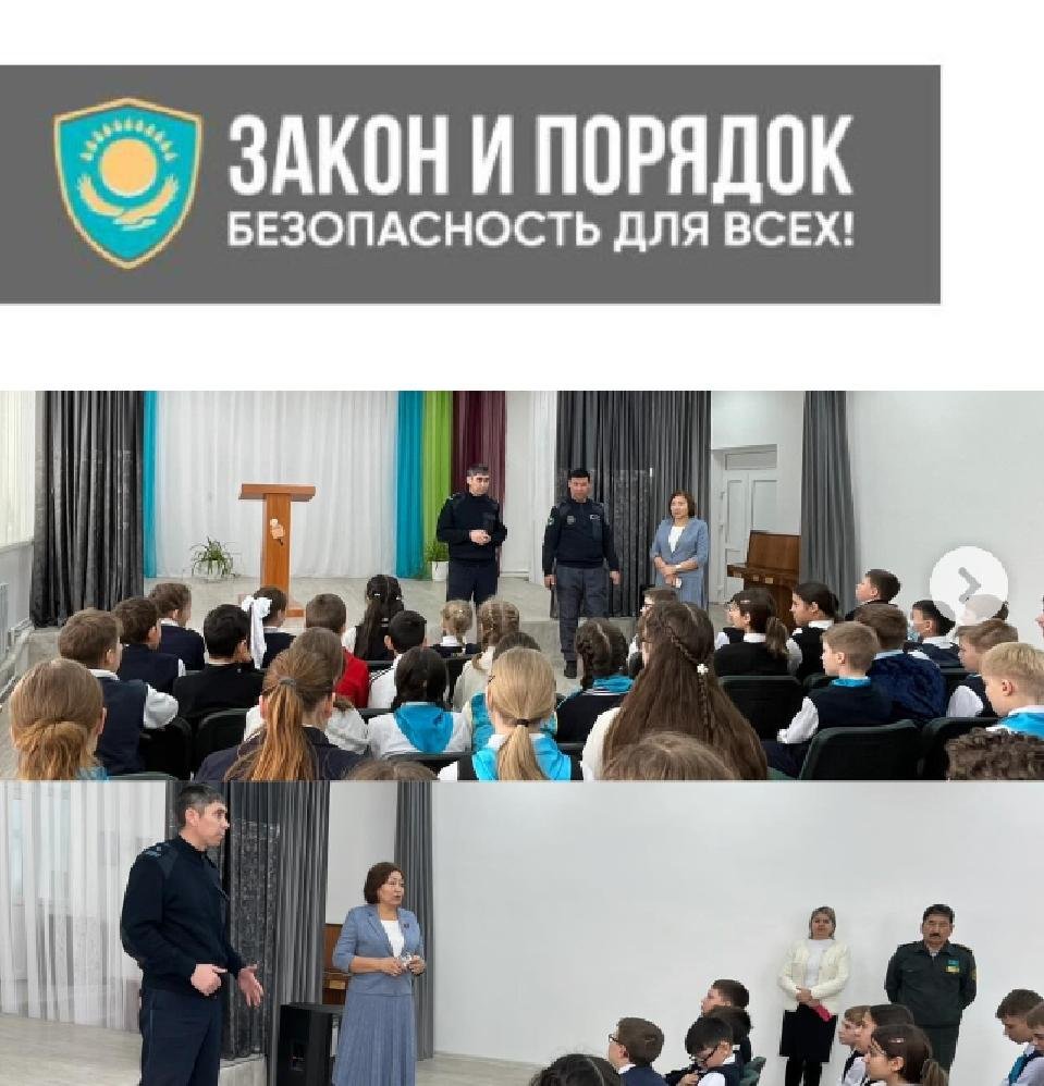 Кездесу барысында инспектор оқушыларға олардың құқықтары мен міндеттері туралы айтып, кәмелетке толмағандардың әкімшілік және қылмыстық жауаптылығының түрлерін түсіндірді, сондай-ақ құқыққа қайшы әрекеттердің салдарын еске салды.