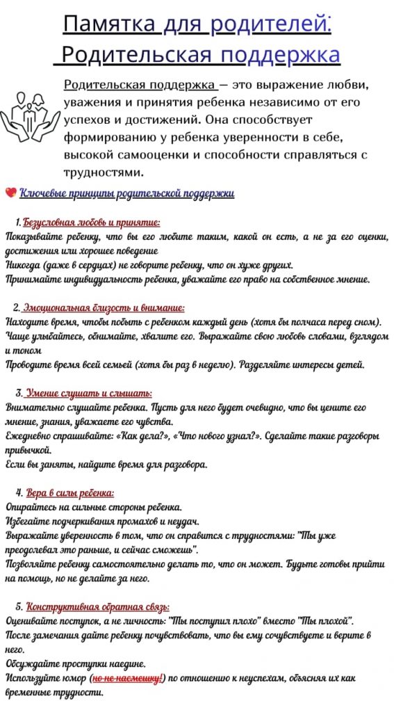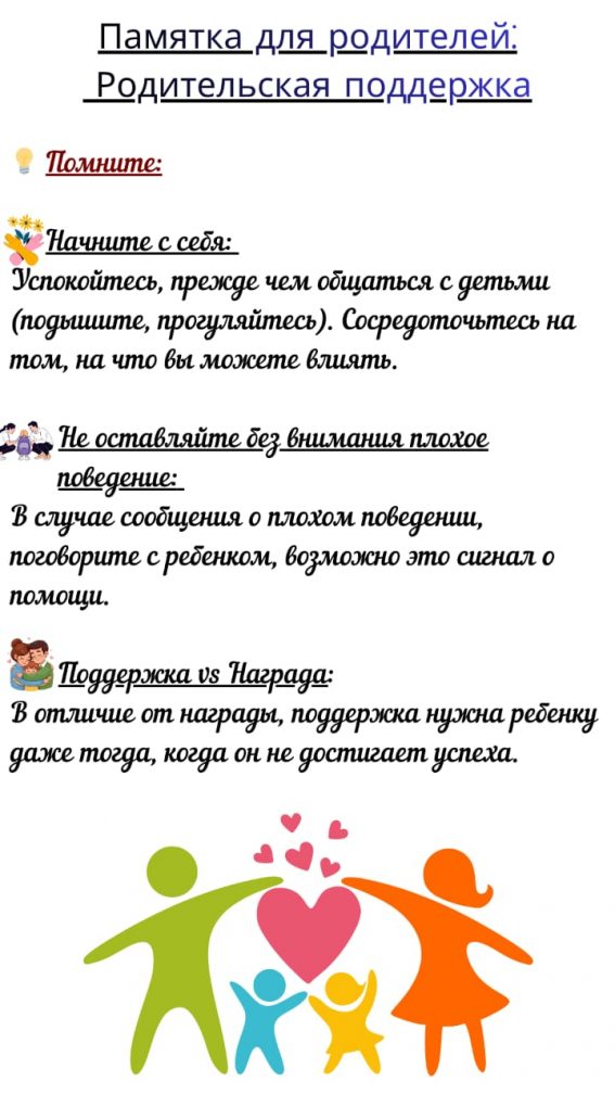 Ата-аналардың қолдауы - баланың күшті жақтарын атап өту, өзіне деген сенімділікті арттыру, қателіктер мен жағымсыз салдардың алдын алу және сәтсіздіктер кезінде эмоционалды қолдау көрсету арқылы оның өзін-өзі бағалауын нығайтуға бағытталған үздіксіз процесс. Әрбір баланың ерекше екенін және қолдау оның қажеттіліктеріне бейімделуі керек екенін есте ұстаған жөн.