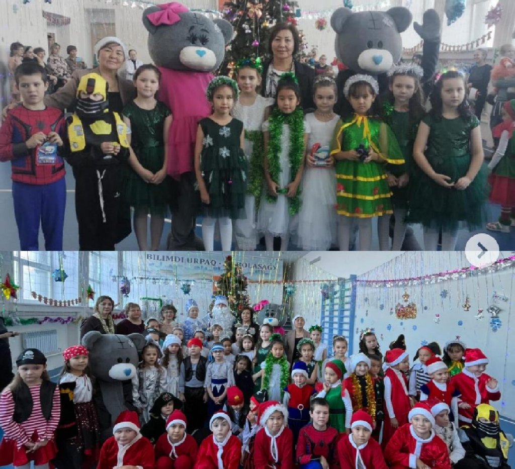 Бастауыш мектепте шыршаның айналасында жаңа жылдық қойылым өтті. Оқушылар ойындарға, байқауларға қатысып, жаңа жыл кейіпкерлерімен танысты.